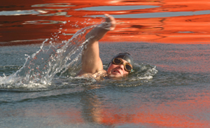 My friend was nearby on an aluminum skiff with his dog and I could hear the props turning as he zoomed around the other boats. As I noticed people lined up on the fuel dock waving their arms, I also became aware that the channel 11 helicopter was still somewhere overhead. "What did I get myself into this time?", I thought. All of these people were here to support me and watch the most boring spectator sport possible, long distance swimming. I started to feel uncomfortable about the attention, but fortunately I couldn't speak, hear, or see clearly, so I reminded myself that I did have a purpose and if people watch Brittany Spears then anything is legit. I felt nervous and under-trained because I had only done eight ocean training swims, all under 6 miles, and I was never a competitive swimmer. Yet I just keep moving my arms considering the fact that many have swum farther.