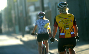 However, the bike commute did present us with some dangers. It became apparent that the road was not designed for bicycle use when Christen fell crossing a set of train tracks that sit at a slight angle to the road. Brad House, from Back on Track Productions and San Pedro's Bike Palace, said that the tracks had caused many cycling accidents. Kyle said that he had almost gotten hit just before tying in with us (wear a helmet next time Kyle!), and to say the least we all inhaled exhaust.