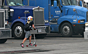 After scootering 16 miles through the industrial ghetto of Wilmington, I have decided that I am the latest example of an extreme athlete. Dodging18-wheelers moving toward me in all directions required fierce focus and commitment if I was going to make it from one extreme to the other. Semi-trucks, SUVs, inconsistent pavement, and unpredictable curbs replaced the typical avalanche or 60ft wave. But I made it alive, and now I am going to razor everywhere because the adrenaline is unmatched. I recommend razor scootering to work for any adrenaline junkie. Razor scooters rule!! And they' re relatively cheap.
